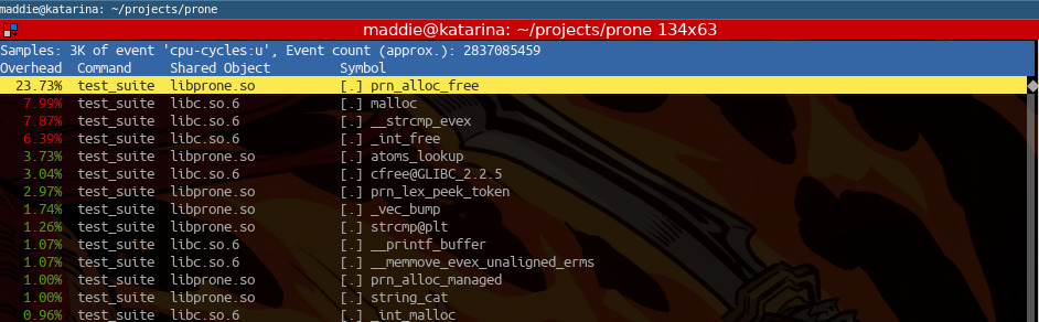 I said I probably wouldn't do any further work on Prone today, but I might anyways, just later in the evening. You see, I like keeping the whole test suite finishing under 1ms on my hardware, and right now, it's on the edge. Some runs go over 1ms. And I thought I knew what the low-hanging fruit would be (some inefficient allocations in the parser) - while that is a problem, there's something even more easy and sweeping to fix.